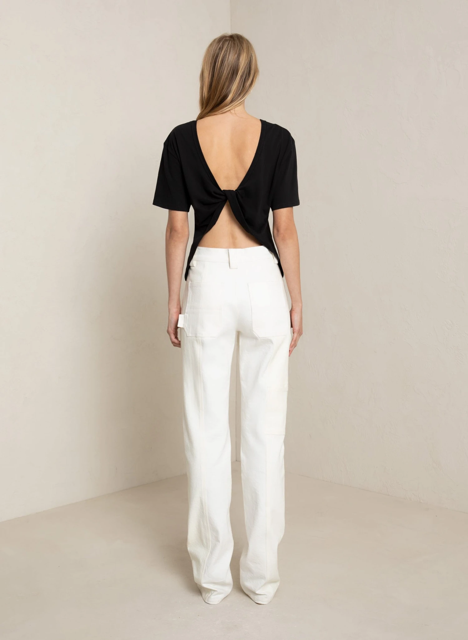 The Campbell Tee is crafted in our soft cotton-jersey blend in wardrobe-essential black. This short-sleeve silhouette features a round neckline and twisted open back.