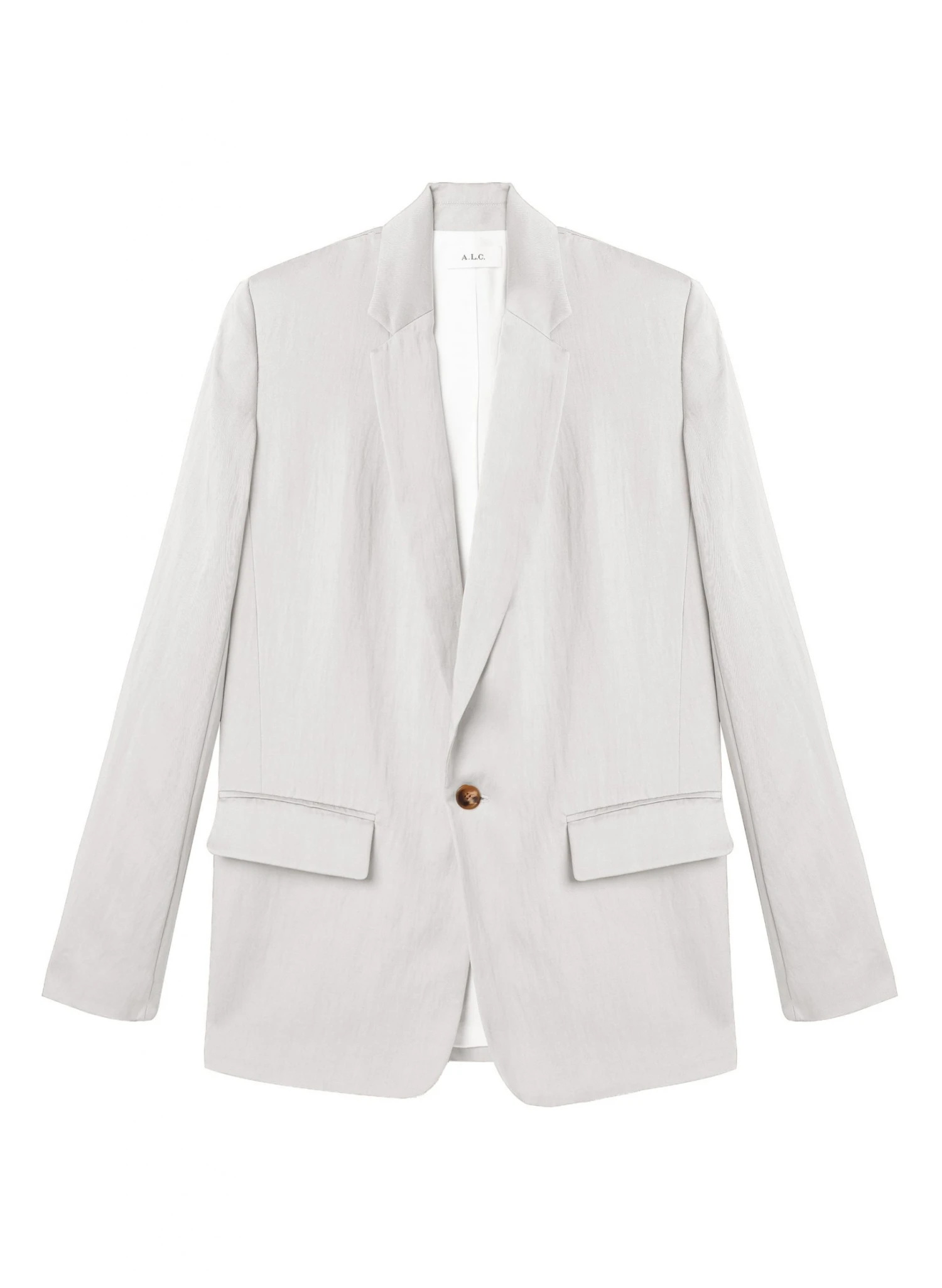 The Dakota Jacket is crafted from soft viscose in a crisp bright hue. This tailored silhouette is cut for an oversized fit, featuring pointed lapels and single button closure.