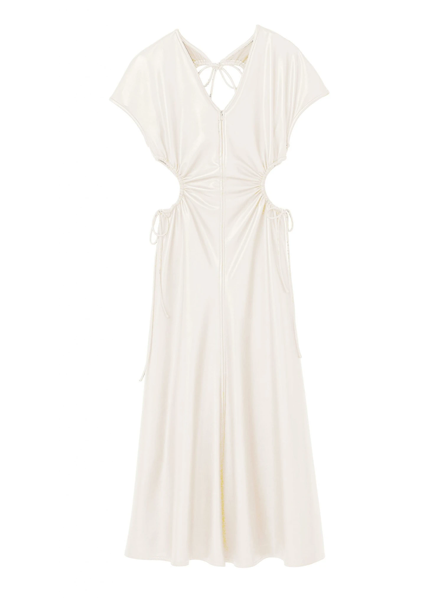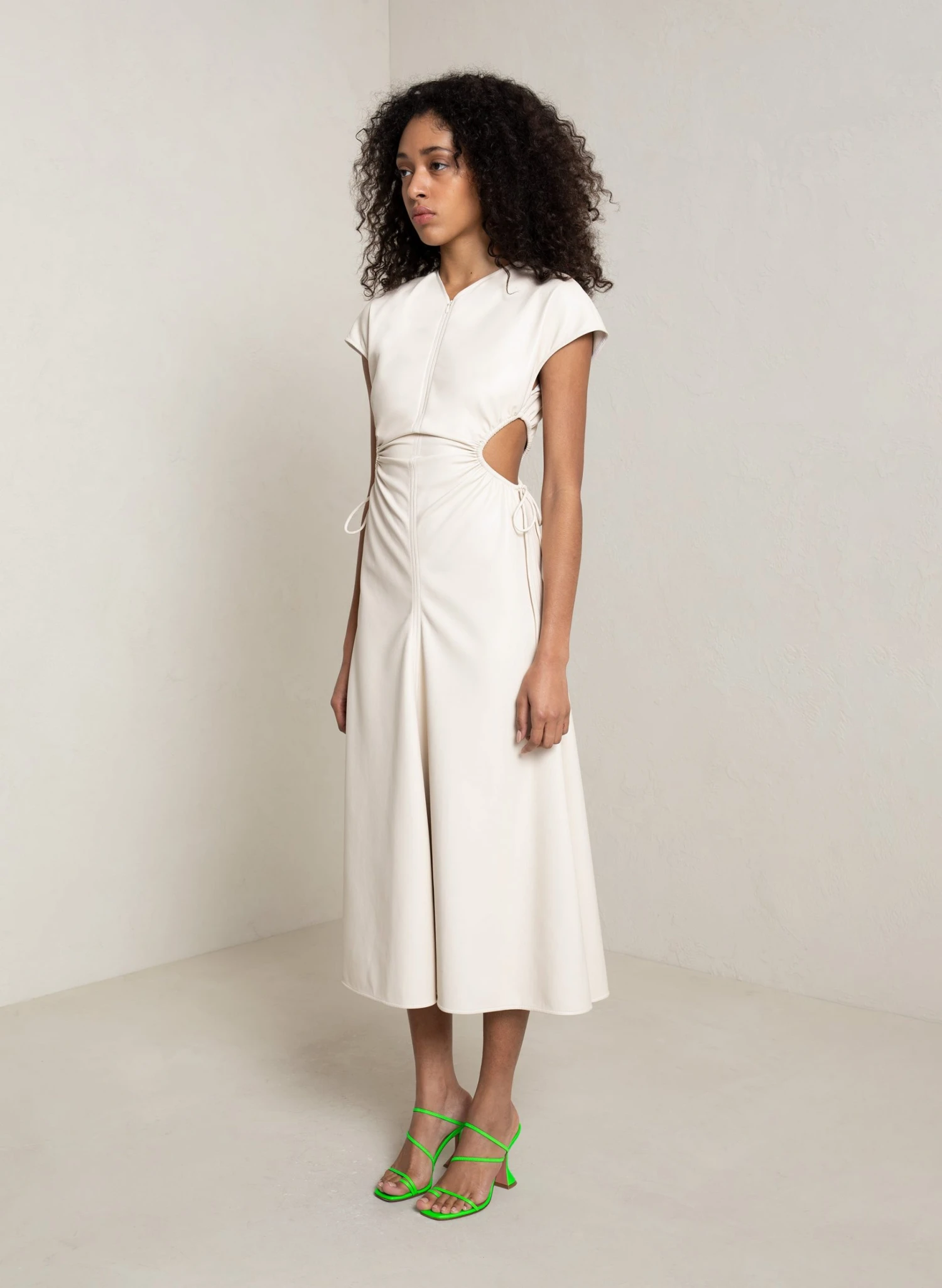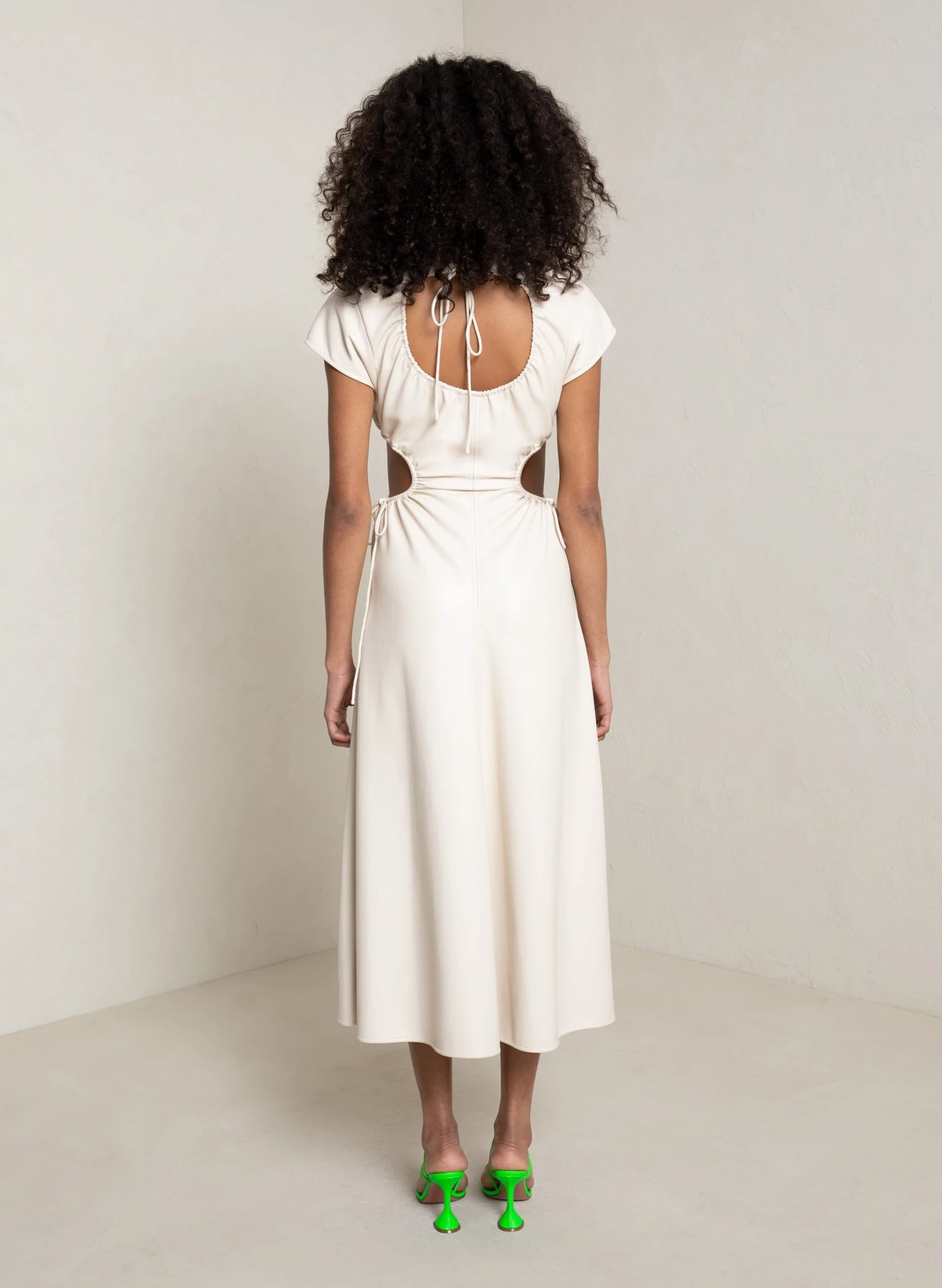 The Syna Dress is crafted from our vegan leather in a soft cream hue. This midi silhouette features cap sleeves, adjustable side cutouts, and a keyhole back. Shop Dresses