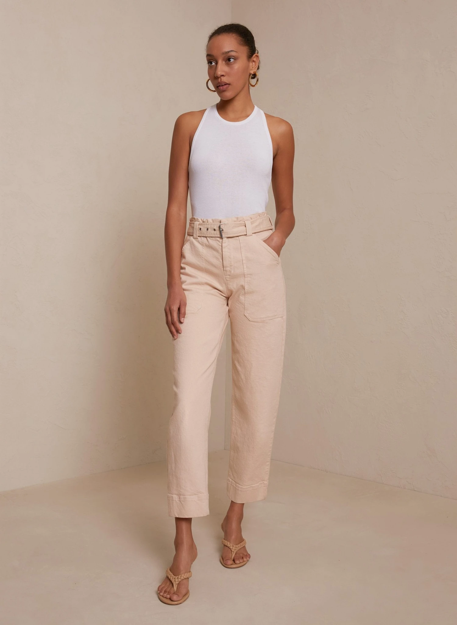 Our seasonless everywhere/anywhere white Nello tank showcases toned shoulders. Layer it underneath sparkling evening jackets or pair it with weekend loungewear.